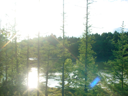 周辺にいくつかの美術館やレクリエーション施設がある塩沢湖。この時間の塩沢湖には夕陽が映ってキラキラ光る湖面がとってもきれいです。ジョギングを楽しんでいる方もいらっしゃいました。