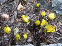 春の兆し、見っけ!!!そっと咲いた初春の花、福寿草♪朝はもっときれいに開いていましたが、太陽の光に反応して開閉するのだそうです。