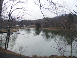 湖面の氷はすっかり溶けてしまったようです。曇り空を映した静かな湖面を眺めているとなんだかとっても落ち着きます。