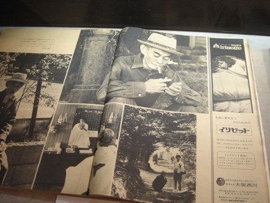 端康成の写真(アサヒグラフ)。上右は室生犀星のお墓の前で。右下は緑のトンネルで夫人と。そ