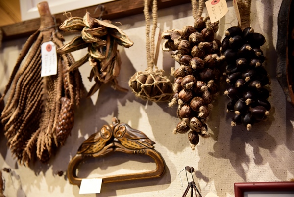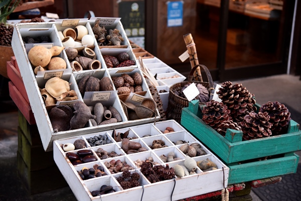 旧軽井沢銀座通りの奥の方にある「ジャムこばやし」。お店の前を通ると「本当にジャムのお店なの?」と思うほど、店頭に装飾品が並べられています。よく見ると、「木の実」だということがわかりました。