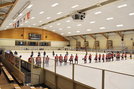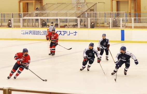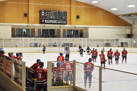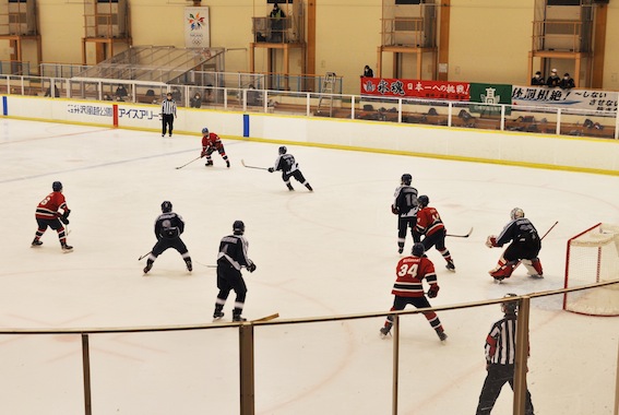 アイスホッケーは、ゴールキーパーを含め6人対6人。