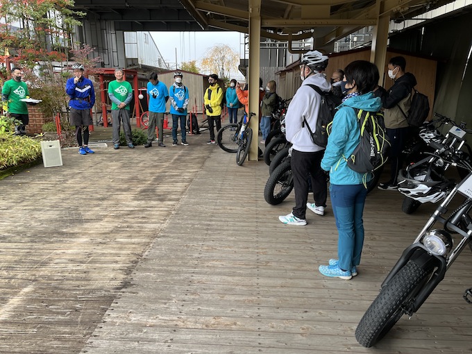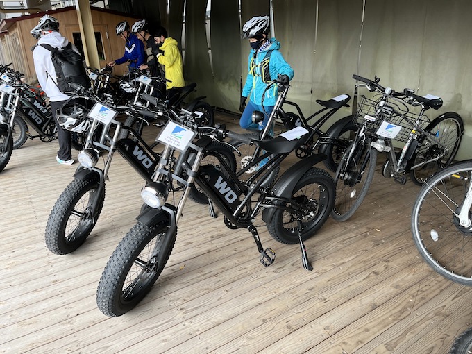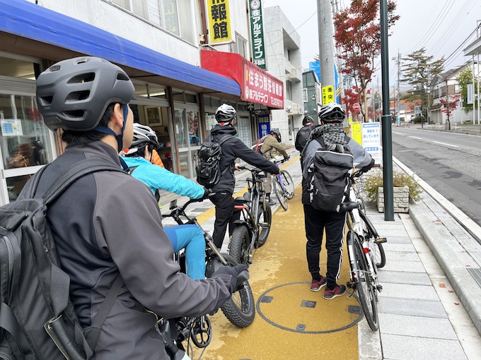 追分宿から先はほぼ下り、とはいえ走行距離約35km。本格的な自転車乗車は約20年ぶり、運動習慣のない腰痛、鼻炎持ち、40過ぎのメタボにはハードなので、電動アシスト自転車をレンタル。3班に分かれていざ出発です。