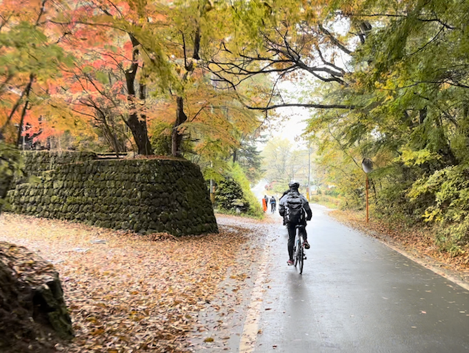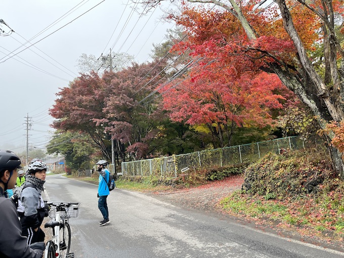 古宿周辺。前日降った雨で路面は濡れていますが、紅葉はキレイです。