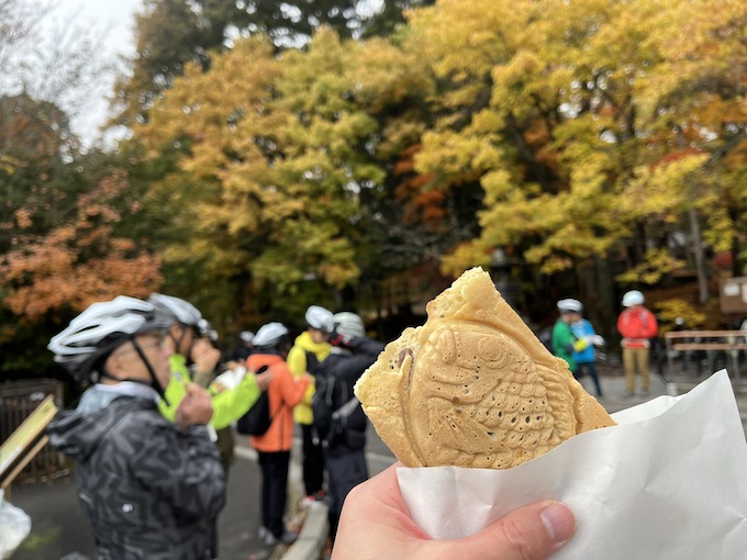 ここのたい焼きは30尾以上食べていますが、体を動かしたあとということもあり、あんこの甘さがいつにも増して体に染みます。給油ならぬ、給糖を済ませたら再出発です。