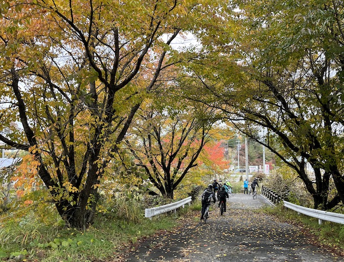 国道18号の平原東交差点近くから左に折れ、旧北国街道をさらに下って行きます。平原信号近くにも、きれいな紅葉のトンネルがありました。