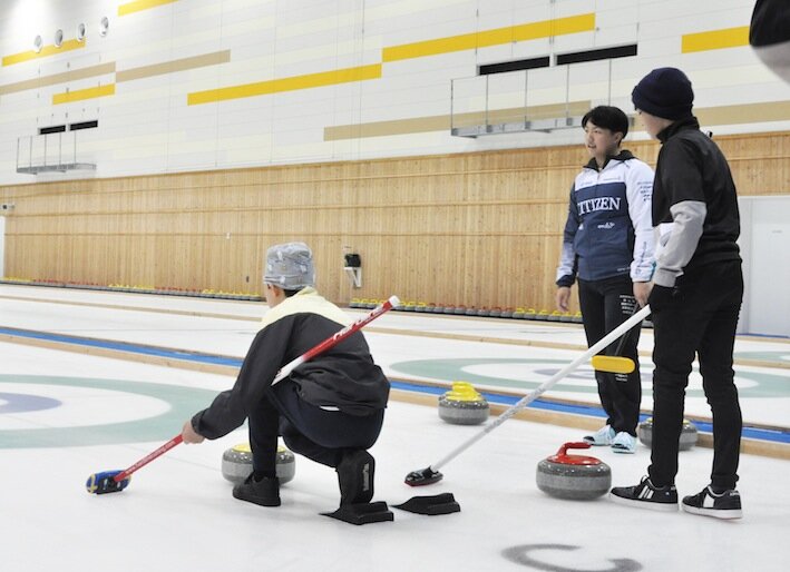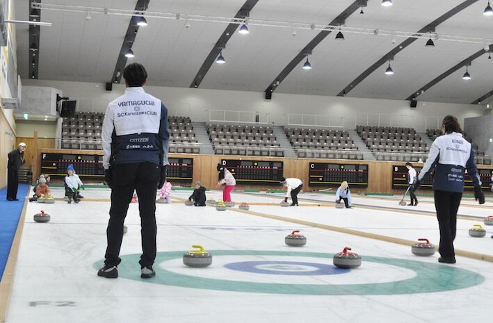 カーリングに参加した20人の子どものうち半数以上は初体験。身体で滑ったり転ぶ練習で氷に慣れたら、最後にはミニゲームもしました。