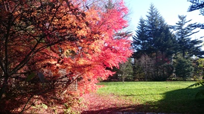 今年の軽井沢の紅葉は最高にきれいでした。 マリン「ほら、見て見て。すっご~くきれいなモミジ」 南原
