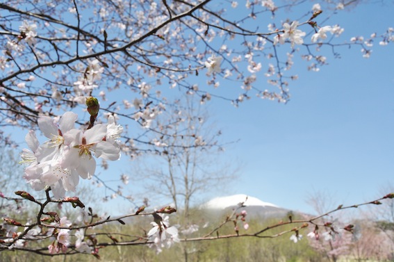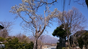 桜がまさに見頃を迎えている軽井沢ですが、17日の冷え込みで、浅間山が再び冠雪。 白い浅間と桜、冬と