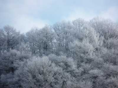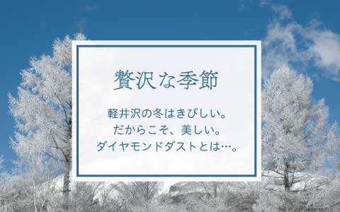 凍てつくような朝、窓を開けたら、そこに幻想の世界が広がっているかもしれない。軽井沢なら、どこでも見られる。場所は特定されることはなく、家の周りでも林の中でも、気がつくと、光り輝く粒子にとりまかれている。