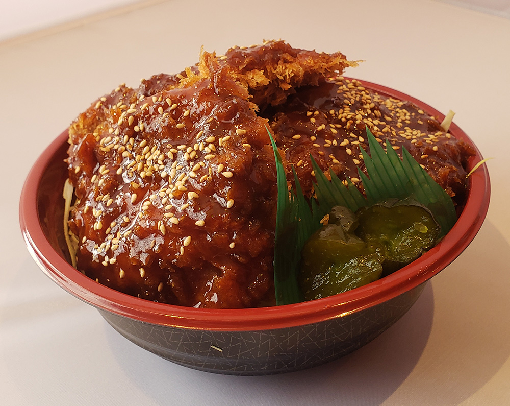 えにしやの名物、ソースかつ丼が自宅で味わえます。ご飯の上に乗るのは、特製ソースとの相性が抜群なサクサクふんわりのカツ。味噌汁もついて、ボリューム満点の一品です。