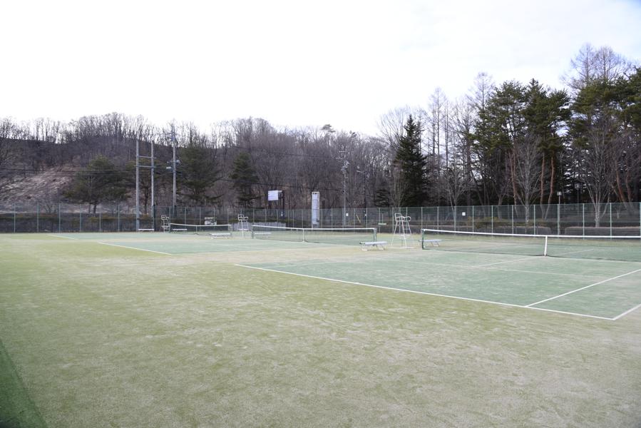 硬式・軟式どちらにも対応できる、砂入り人工芝のコートが14面。照明設備もあるので夜間の利用もOK。