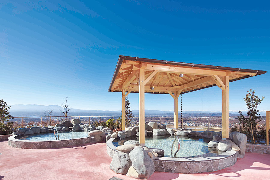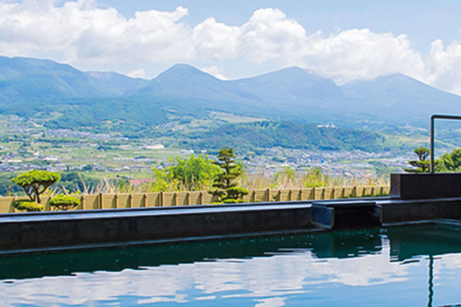 露天風呂やサウナから浅間山と小諸市内が一望できる日帰り温泉。大人数のグループや、家族と一緒にゆったりと。