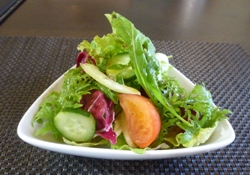 10種類の野菜が三角形のお皿にぎっしり。ドレッシングにゆずの香りが効いています。