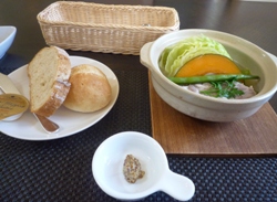 信州ポークの塩豚キャベツ煮 鍋仕立て (サラダ、パン付き) 1890円