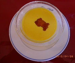 沖縄産さつま芋のスープ、中には自家製コンソメゼリーが入っています。