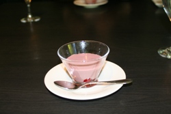 どちらのランチセットにもこちらのデザートつき。桃のムースの下には、苺を沈めたソースが。甘味料には血糖値上昇が緩やかだとされているアガぺシロップを、油脂にはココナッツオイルとオーガニックパームを使っているそう。後味のすっきりとした爽やかな口当たりです。