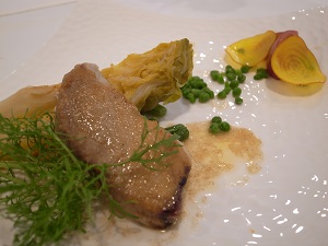 私はムニエルをいただきました。あっさりとしたマグロは焦がしたバターの香りいっぱいのソースでまろやかな味わいに。春キャベツにアメーラトマト、キイロニンジンと、付け合わせの野菜にも満足。