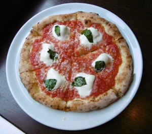 薪窯から焼きたてのピッツアが運ばれてきました。