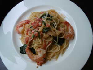 大きなエビとほうれん草がクリームとからまって相性抜群。