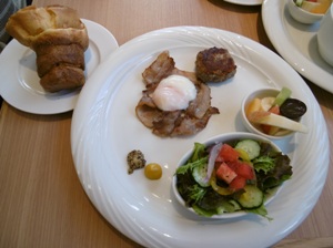 両方を味わいました。他には、サラダにフルーツ、ポップオーバーが付いています。
