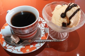 デザート、コーヒー チョコがけアイスクリームで 熱くなった身体が程よく冷やされ 食後もゆったりと寛ぐことができました。
