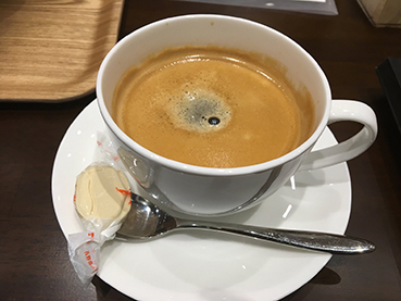エスプレッソマシーンで抽出したコーヒーには、落雁(らくがん)が付いてきます。落雁って、栗が入っているのかとおもったら