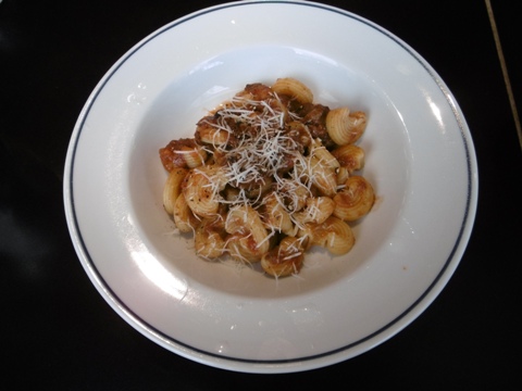 モチモチとしたペンネがよくトマトソースと絡み合っています。牛肉は柔らかく煮込んであり、コラーゲンがたっぷり入っているそうなので、女性にはうれしいですね。