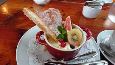 クリームに付けていただきます。美しく飾られた季節の果物も