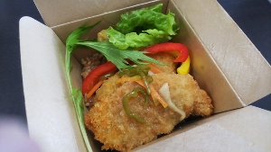 カスクルートは信州サーモンをハンバーグにしたフライに