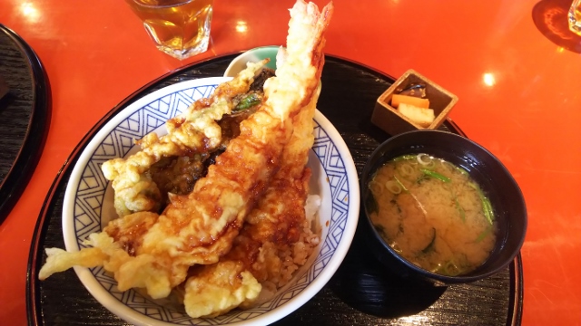 特大エビ天丼 季節の野菜天ぷら付き 1428円