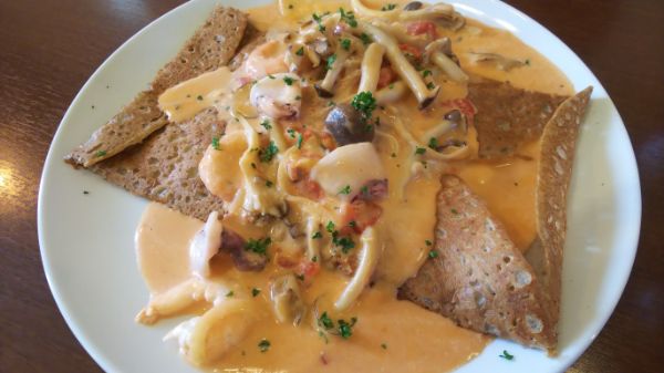 チーズとたまごガレット&信州きのこと魚介の濃厚トマトクリーム 1220円