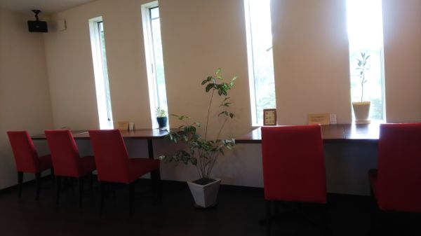 新型コロナ対策で席数を減らし、通路横は窓向きの配置になっていました。