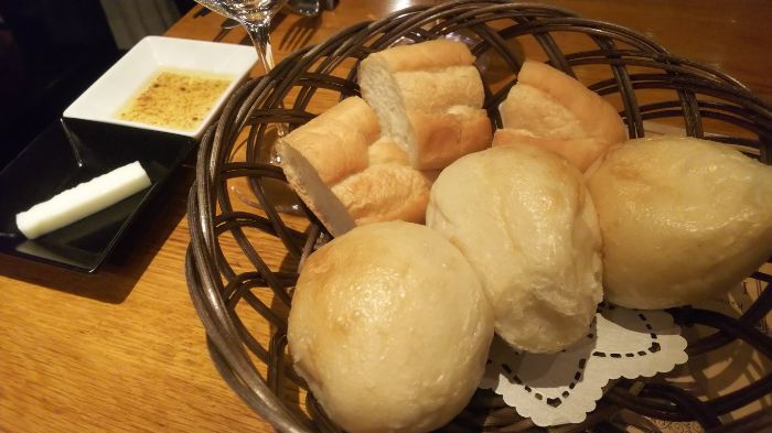 左手に写っている、スパイス入りオリーブオイルや白いバターを付けて。