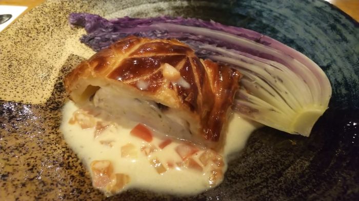 ホタテとキノコのパイ包み 白ワインソース