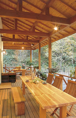里山の緑と木の香りに包まれて素足でくつろぐヒーリング空間