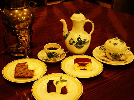 チューダー朝の落ち着いた空間での優雅なティータイム。こだわりの珈琲or“新茶の紅茶”に当店人気ケーキトップ3がワンプレートになったスペシャルセットが好評。