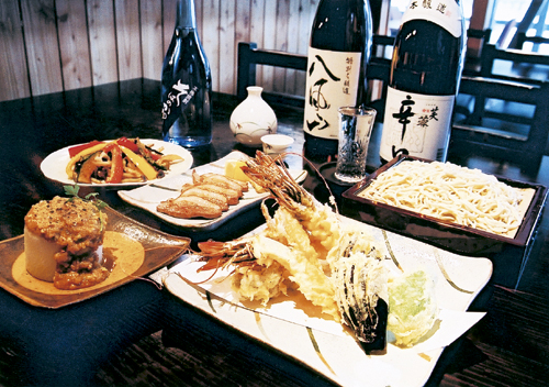江戸時代の酒好きは蕎麦屋に通った…、そんな「粋な遊び方」を今に教えてくれる店。自家製粉の粗挽きそば粉で打つコシの強い香り豊かな蕎麦が自慢の「川上庵」では、信州各地から取り寄せた店主厳選の銘酒がずらり。お酒の旨さをひきたてる旬の一品料理も揃い、明るいうちから盃を交わすのも軽井沢ならではの贅沢な時間。