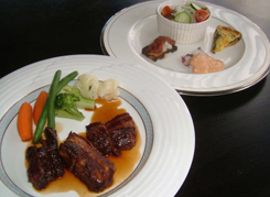 ディナーコースのミニオードブルと豚肉の赤ワイン煮込み