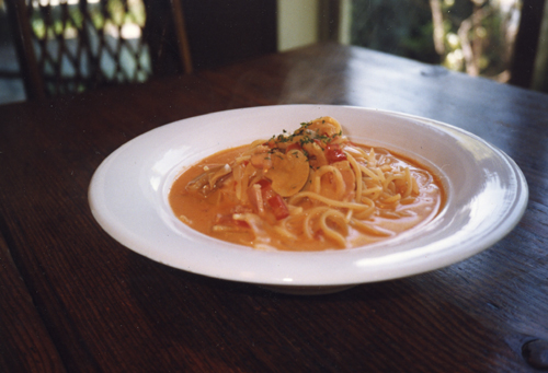 高原のデザートと生パスタやピッツアが充実。特にオススメは、スモークドベーコンとトマトクリームチーズソースのパスタ。オリジナルな味を楽しんで。