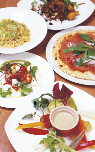 民家を改装した店内は、大きめのテーブルがゆったりと配置され、イタリアのマンマの家を訪ねるような雰囲気でくつろげる。24種類の豊富なパスタや、もっちりタイプの薪窯焼きピッツァが大好評。