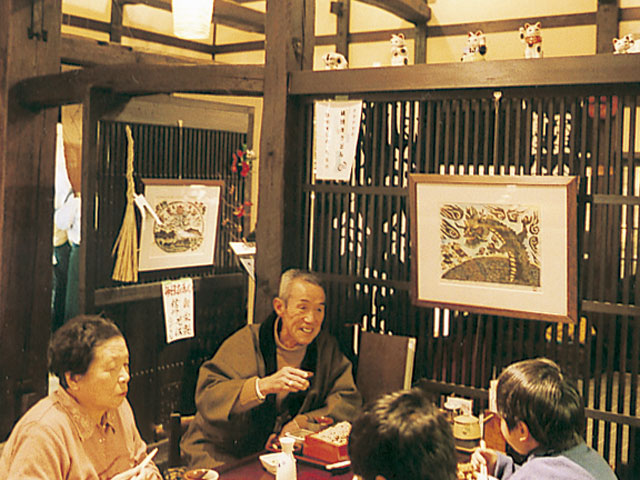 国道18号沿い、落着いた風情の建物。誰の口にも合う家庭的な味わいを提供。自家製のそば・うどん、郷土料理などバラエティに富んだメニューも見逃せない。宴会は10名〜30名で対応。送迎もおこなっている。