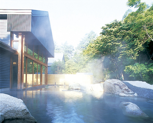 大正4年の開湯以来、今も源泉かけ流しの湯量を誇り、文人をはじめ多くの人に愛されて来た星野温泉の立ち寄り湯。とうとうと湧き出すお湯はとろりと優しい肌触り、「美肌の湯」としても有名。檜が香る広々とした内湯と、自然との一体感を味わえる野趣あふれる露天風呂。肌で感じる四季折々の森の移ろいが、日常の疲れを癒してくれる。