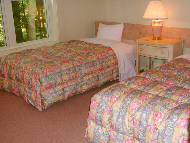 すべて室内から2階に上がれるゆったりスペース。1階は、暖炉を囲んだリビング、2階は独立したツインルームが2部屋で、家族やグループで過すのに最適。