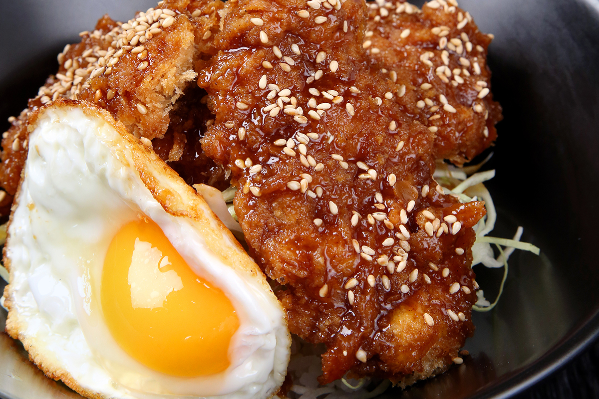 ランチは種類豊富な定食メニューがリーズナブルに楽しめる幅広い世代に人気のお店。名物の「えにしや流ソースかつ丼」は、大盛りのご飯の上にサクサクふんわりのカツと目玉焼きが乗ってボリューム満点。特製ソースとの相性も抜群。