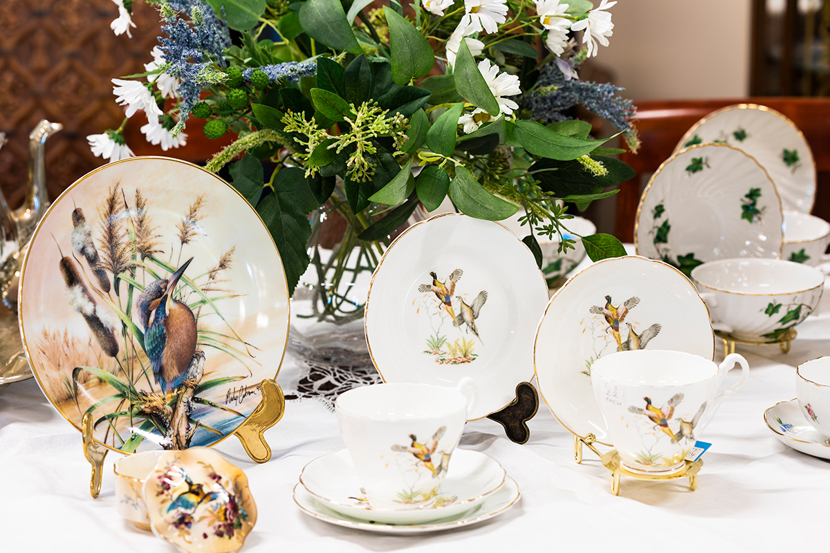 ヨーロッパの良質な家具やおしゃれなデザインの家具はもちろん、魅力的な食器や小物、レースなど揃う。
