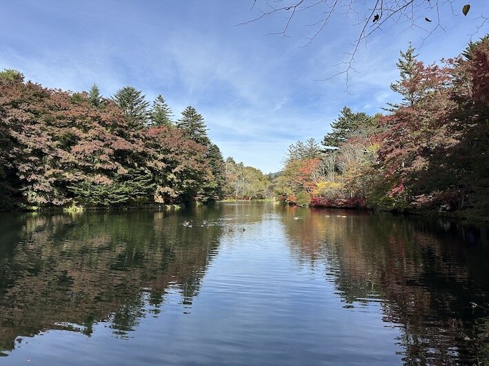 例年10月下旬には見ごろを迎える紅葉が、今年は色づきが遅く、中には紅葉前に枯れて落葉している葉も見られる。紅葉の名所として多くの人が訪れる雲場池は、11月に入りやっと色づき始め、3連休にようやく見ごろとなった。地元の人からは「今年の紅葉はあまり良くない」「こんなに遅いのは初めて」との声が挙がっている。