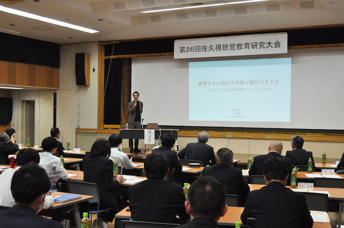 教育工学などを専門にする放送大学准教授の小林祐樹さんも講演。教師の指示ではなく、子どもが自律的にICTを活用している全国の取り組み事例を紹介。「子どもが勝手に学び始めるような、学習の場や環境をデザインすることが私たちの役目」と、教師の授業観のアップデートが必要と強調した。