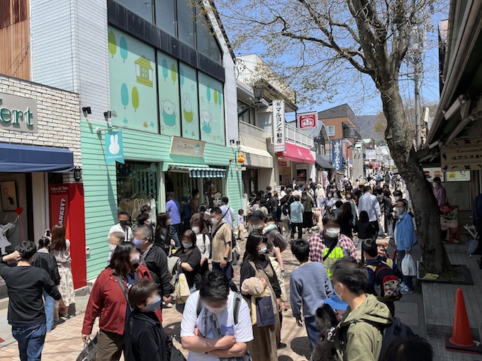 北陸新幹線は前年比241% 3年ぶりに行動制限のない中迎えた春の大型連休の軽井沢は、多くの観光客で