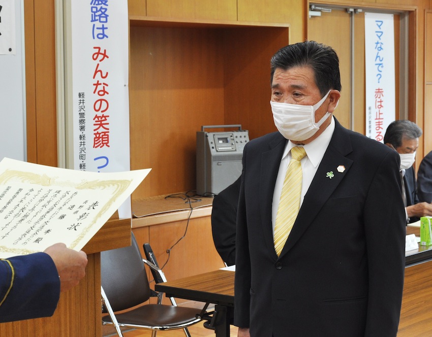 軽井沢警察署、軽井沢交通安全協会、軽井沢町は9月24日、軽井沢中学校の生徒に、自転車のサドルにつけ